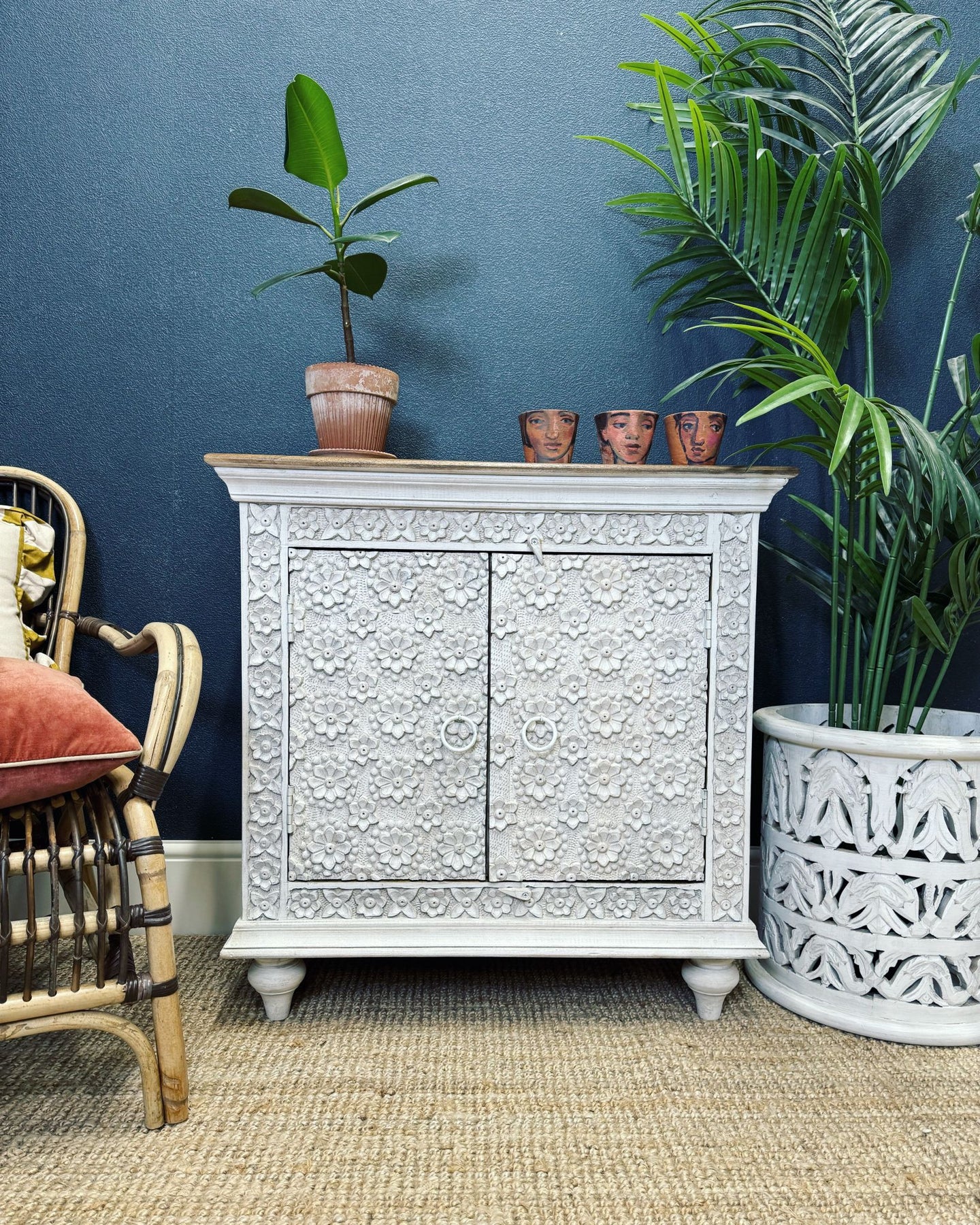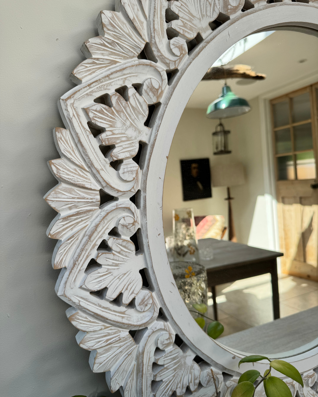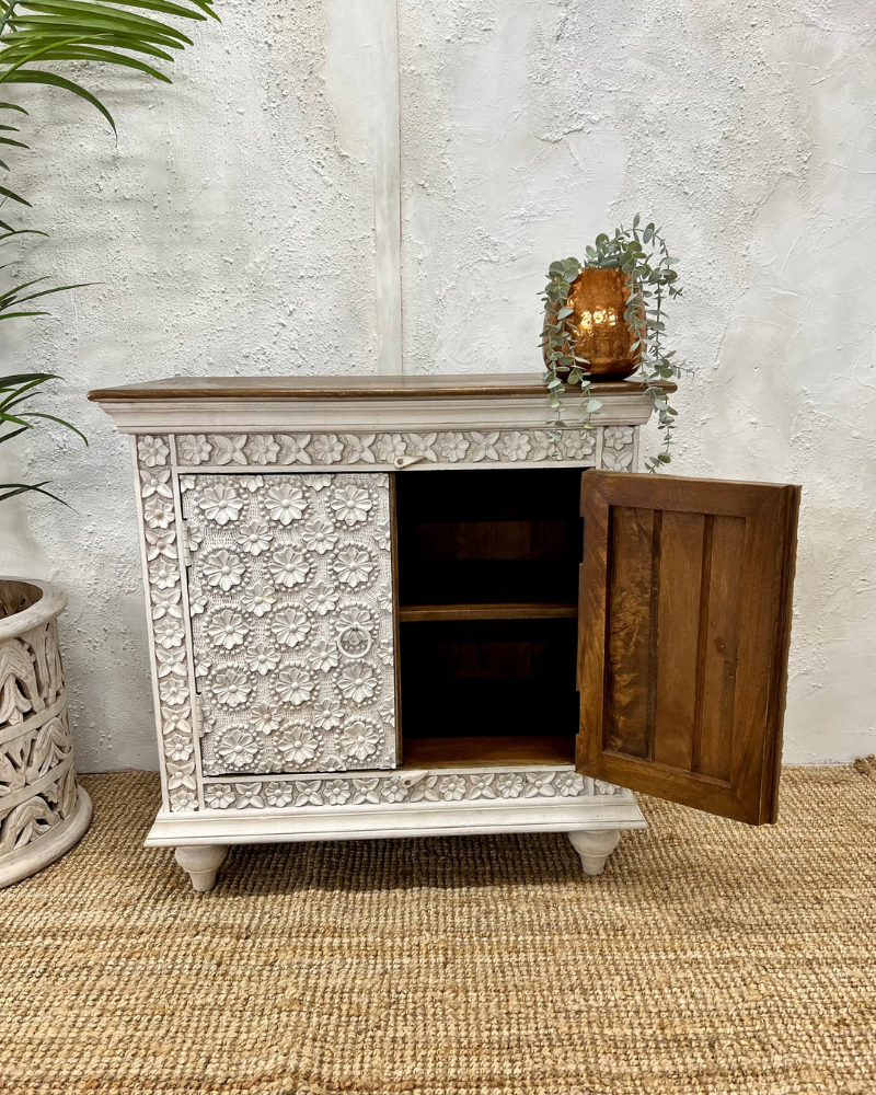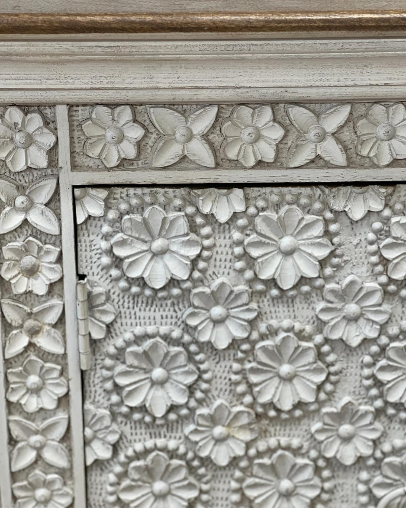 Detalles tallados que aportan textura y luz con un acabado suave.