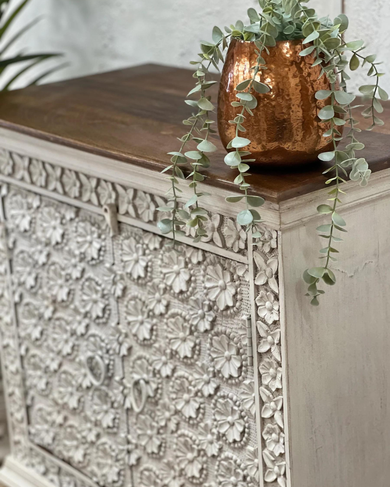 Acabado artesanal con efecto envejecido que aporta carácter y personalidad.